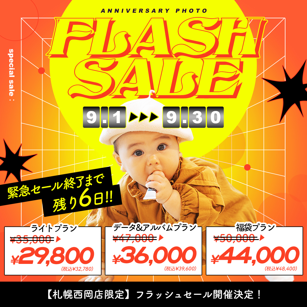 【Palette+plus札幌西岡店限定】電撃プライス!”フラッシュセール”開催【9/1〜9/30】 / ベビーキッズ全種目記念撮影対象!