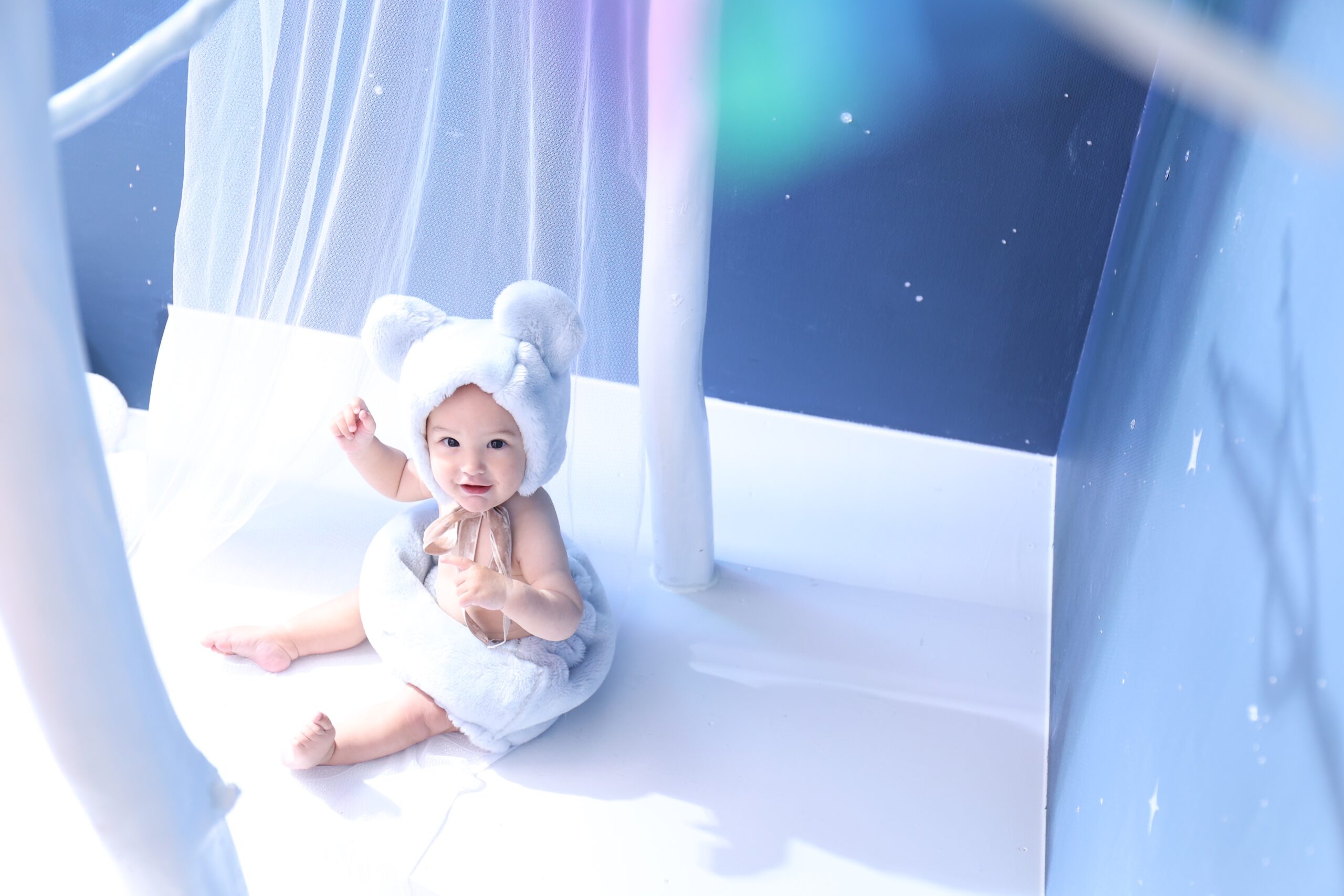 北海道札幌市豊平区西岡にNEWオープンしたベビー・キッズ専門フォトスタジオ Palette+plus札幌西岡店です! 今回はほしぞらスタジオで女の子ベビーのビジュアルをご紹介致します! 白いモコモコのわんちゃんのなりきりお衣装です♡ とっても可愛いいビジュアルとなっておりますのでぜひご覧くださいませ!