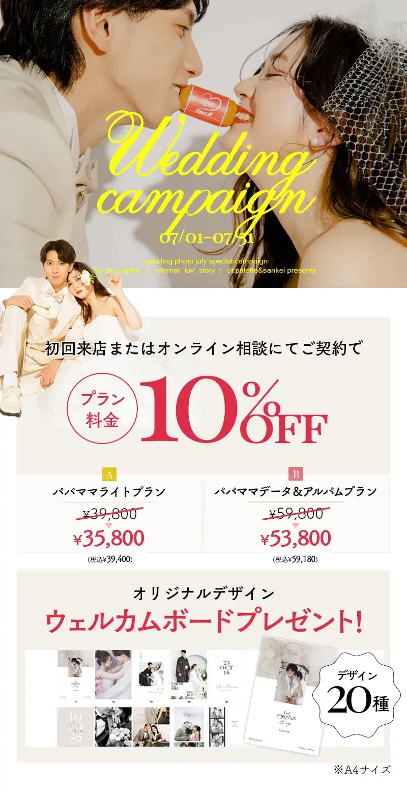 プラン料金のOFFに加えて、ウェルカムボードを1枚プレゼント♪