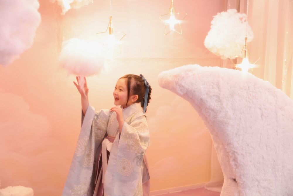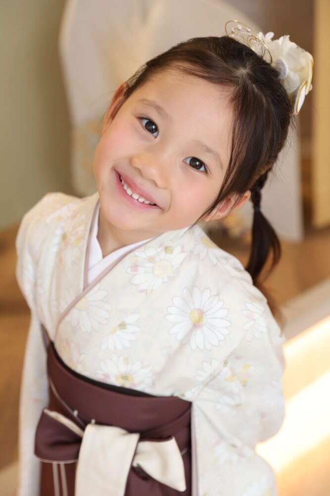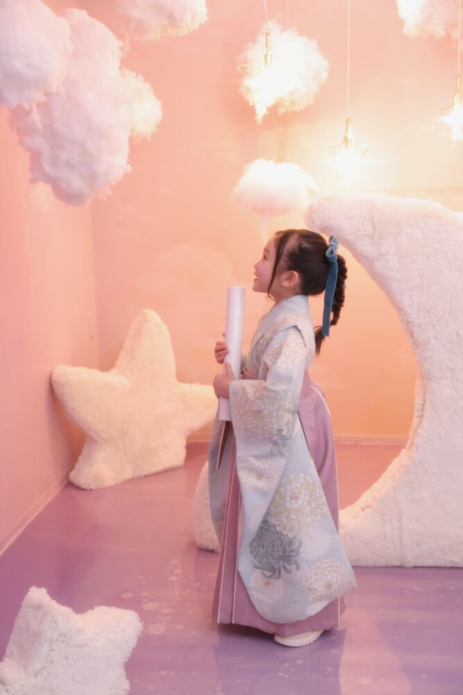 七五三記念でもとっても人気なお着物とくすみピンクの袴を組み合わせたコーデ🩵