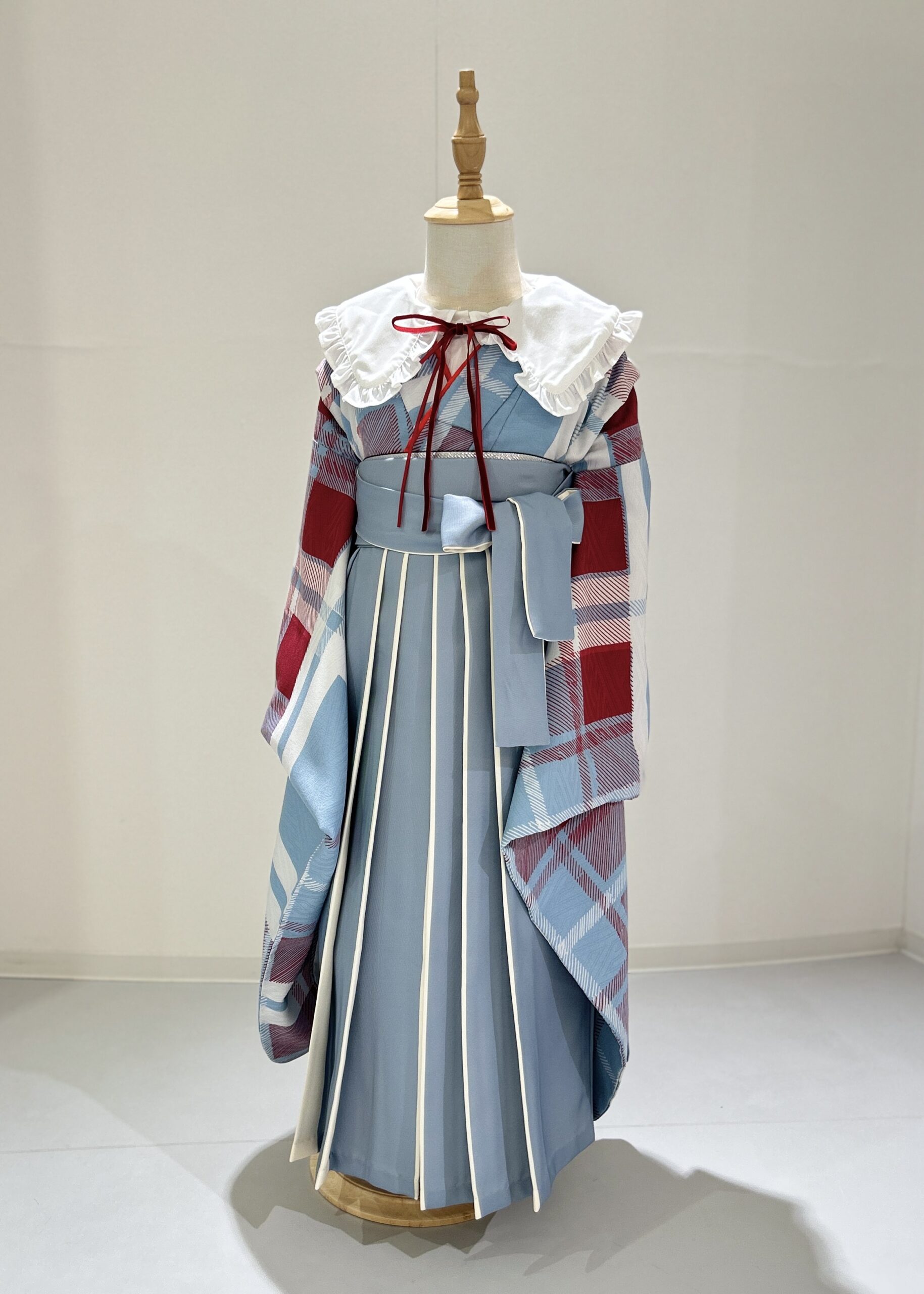 水色の和装に大きな襟のブラウスを組み合わせて可愛いstyle♡