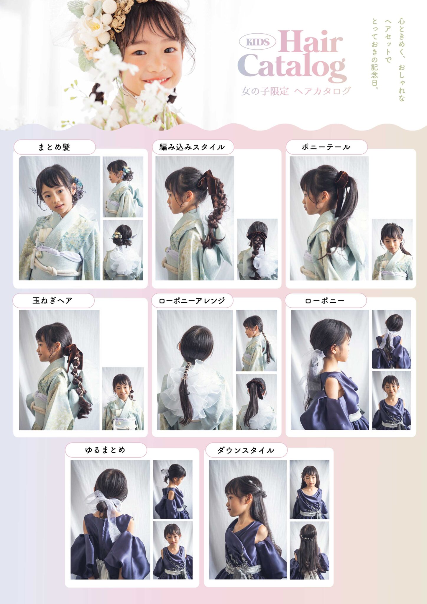 女の子:8種類のヘアカタログからお選び頂けます!