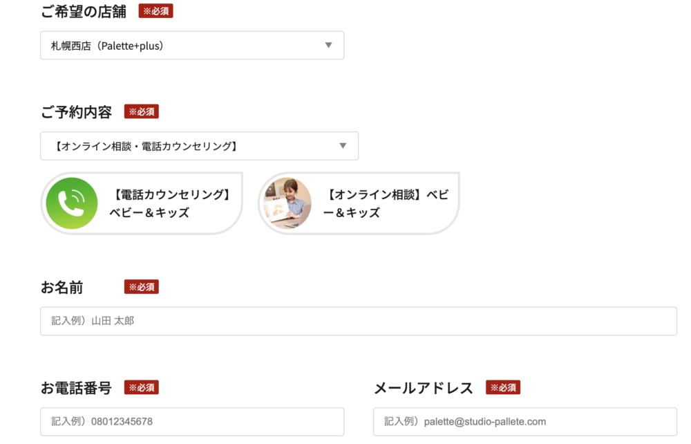 HPの予約ボタンを押し、店舗選択後「※必須」項目に入力お願い致します!