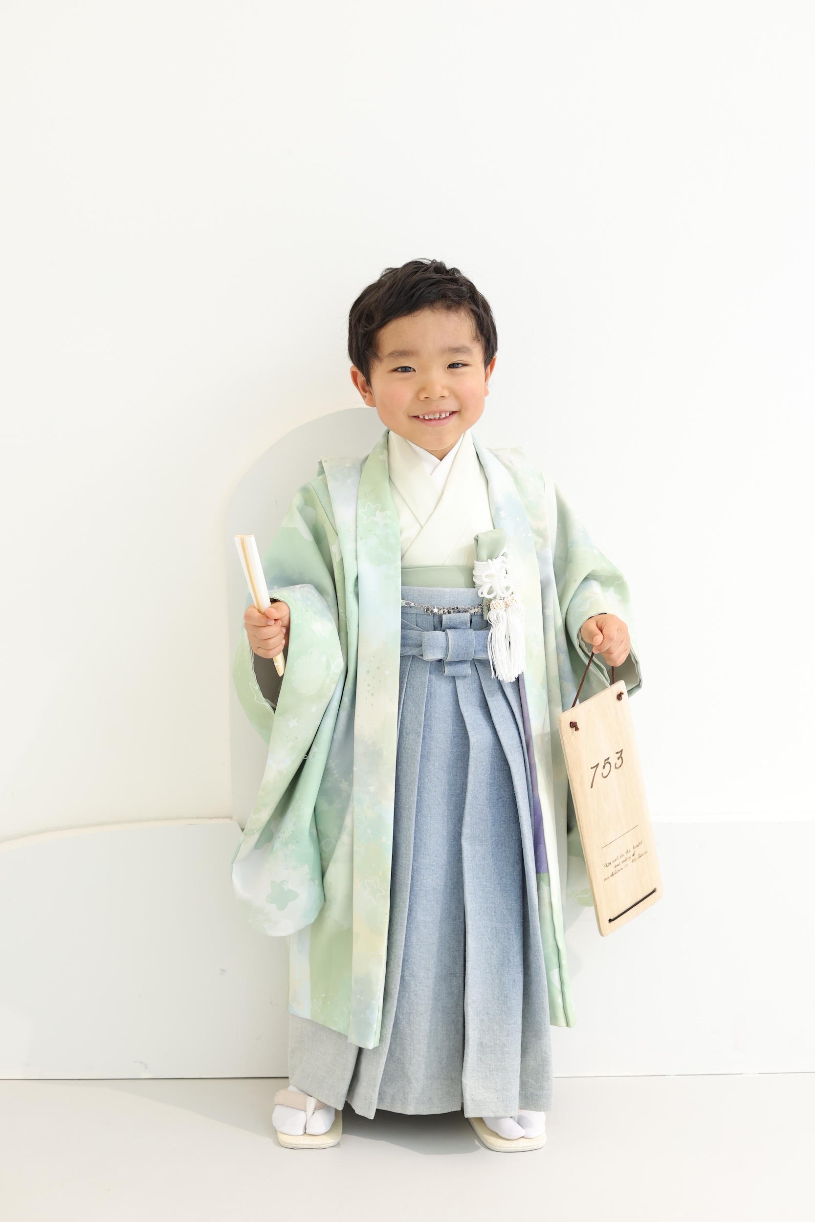 デニムの袴がちょっとカジュアルでおしゃれな羽織袴はお子様ご本人に大人気!