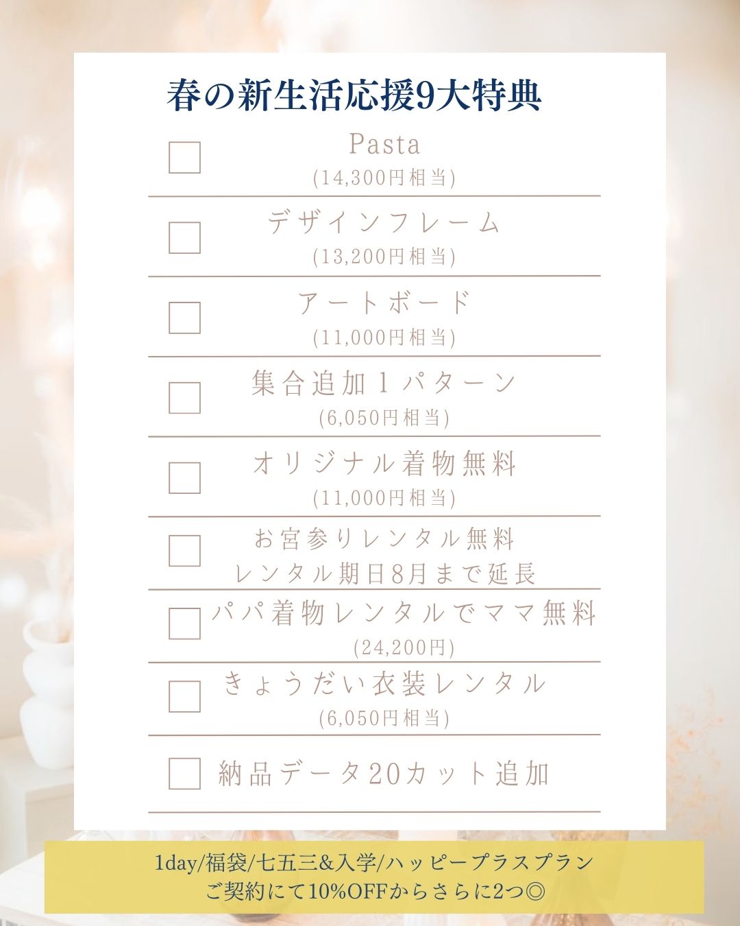 新生活応援!10%OFFからさらに2つ選べるスペシャル大特典🌟🌟