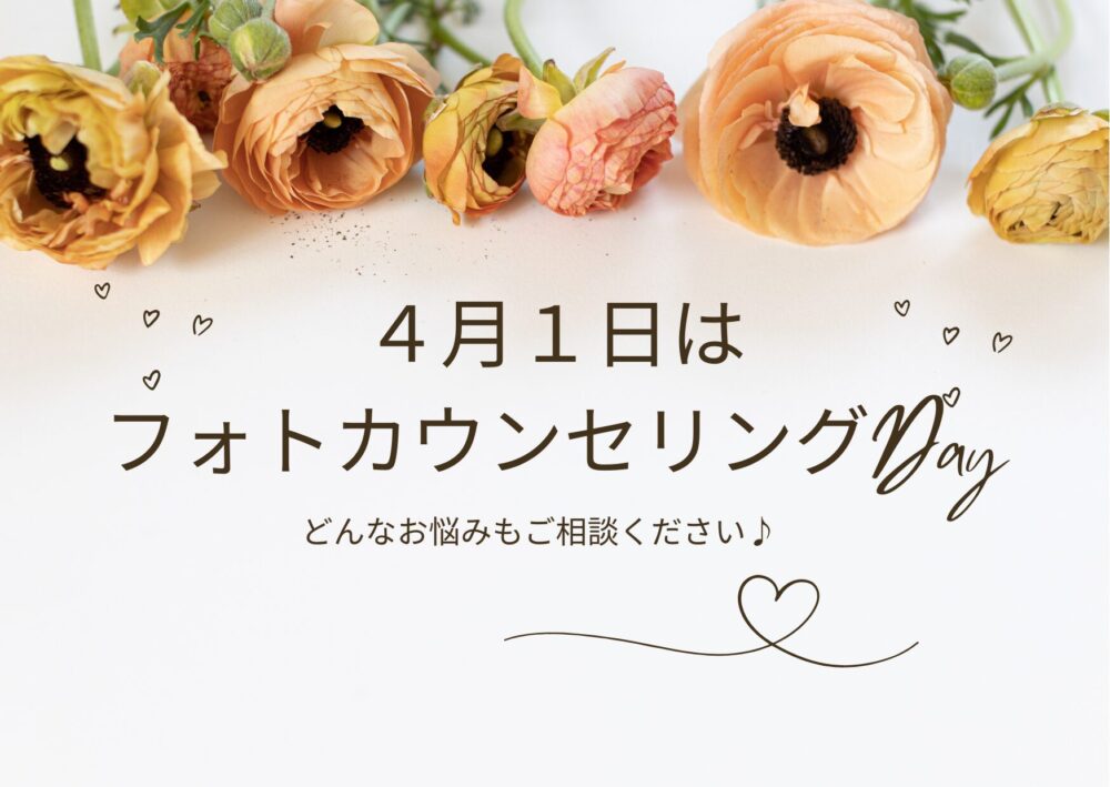 毎週水曜日は定休日ですが、4月1日(水)は特別に『フォトカウンセリング専門DAY』を開催します!!