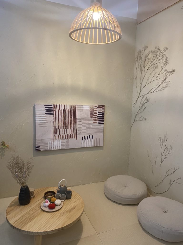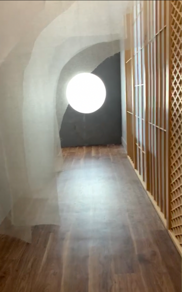 奥の通路は薄い布が何枚も重なりアートな空間に!