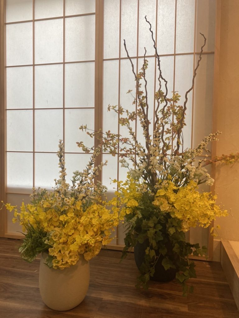 黄色のお花が和の空間にマッチして洋装にも合う空間へ大変身します💖