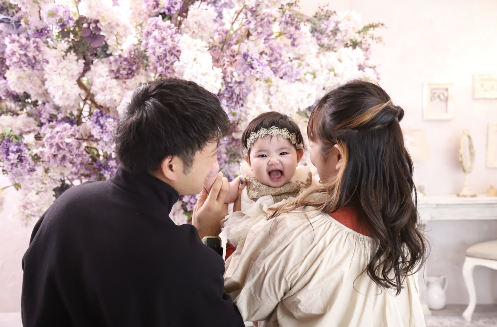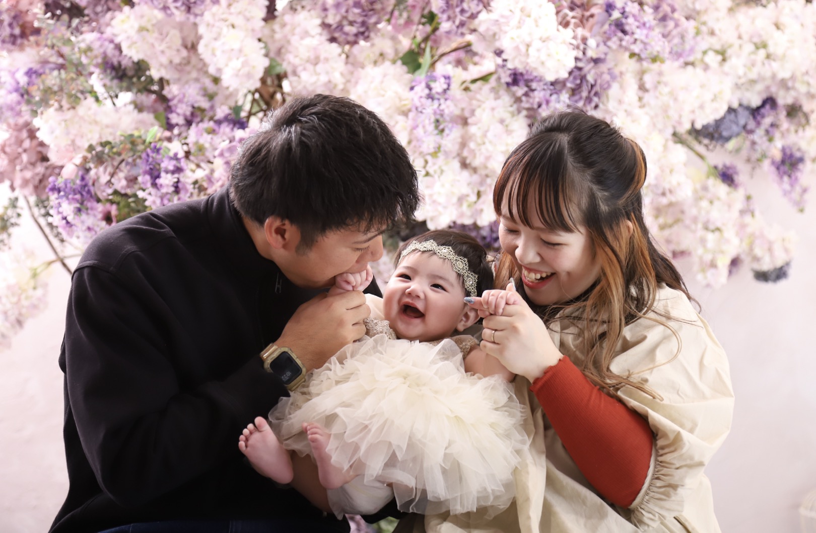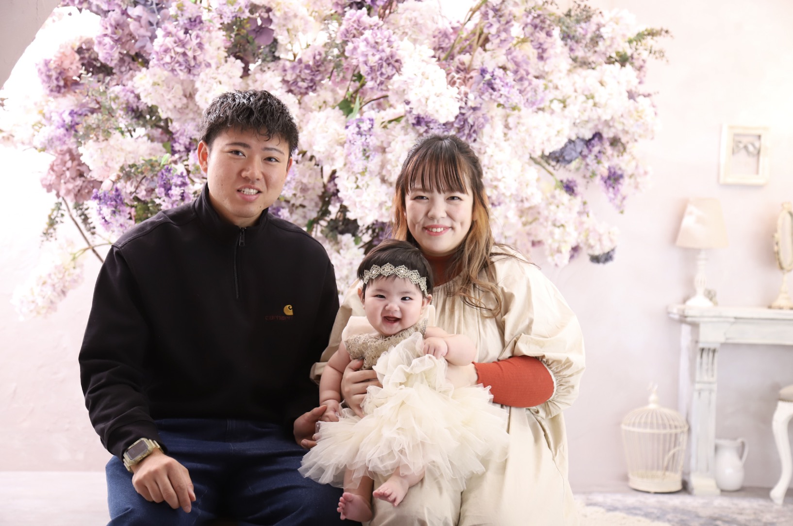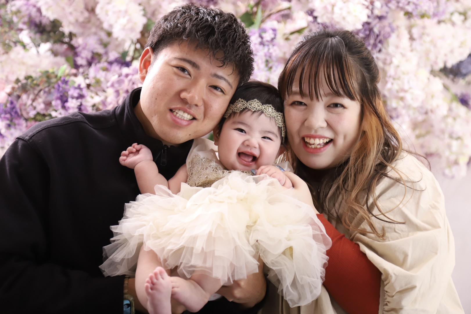 こんにちは!ぱれっと帯広店の松田です! 今回はお花の国で撮影した家族写真のご紹介です! お子様の100日記念できてくれました♪