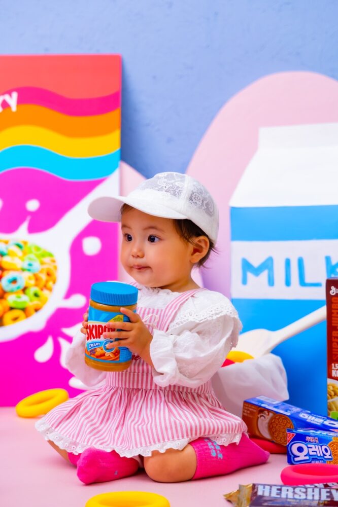 お菓子やピーナッツクリームを持っているのも可愛い♡