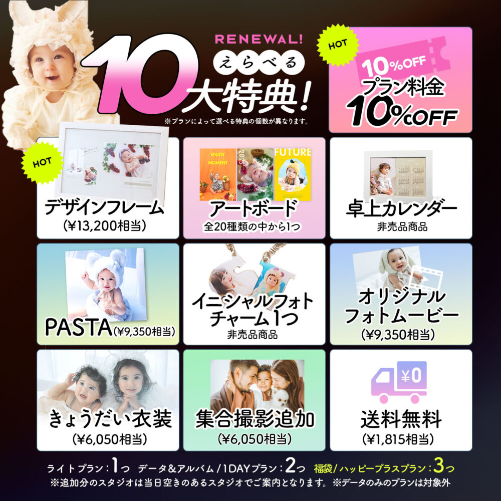 *帯広店は”2スタジオ撮影”ではなく”家族集合撮影追加”をお選びいただけます。