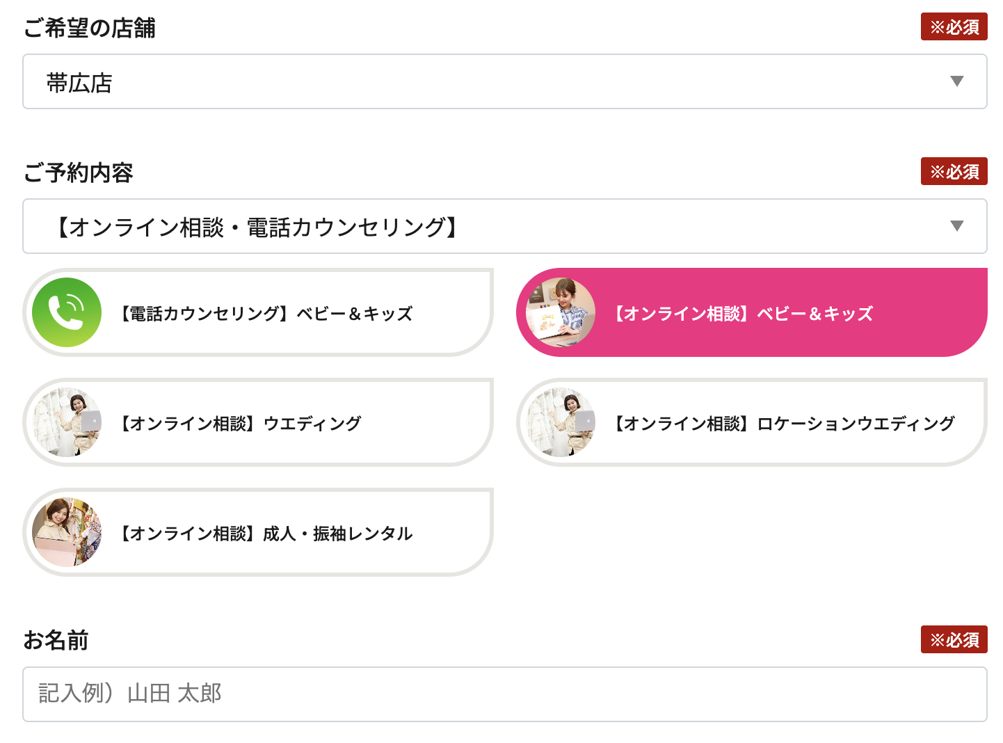 【帯広店 予約電話番号】