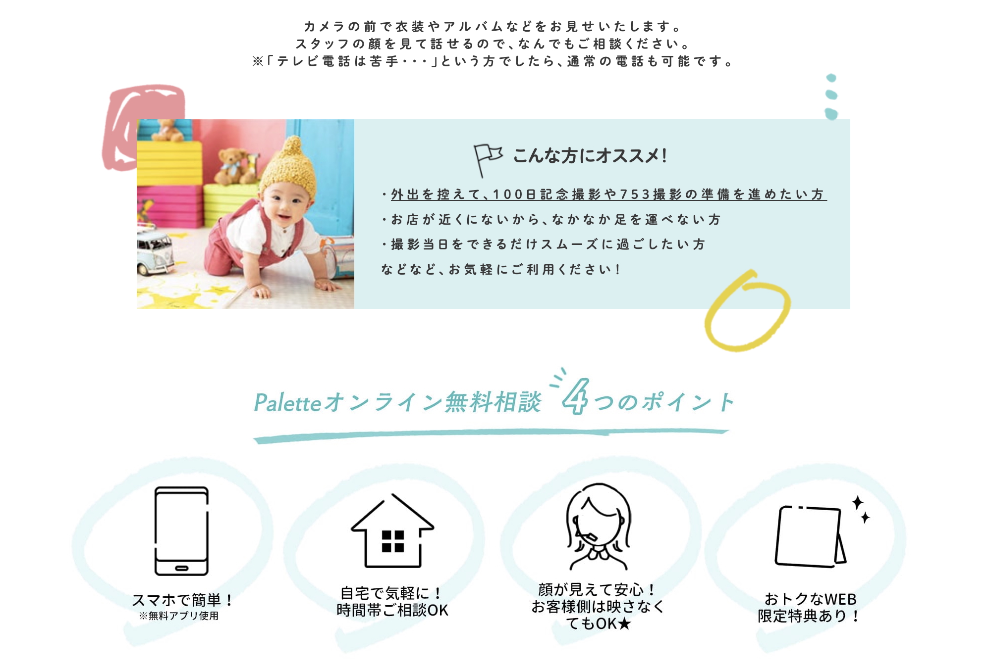 事前にオンライン相談していただくと撮影までの時間もスムーズに行えますよ✨