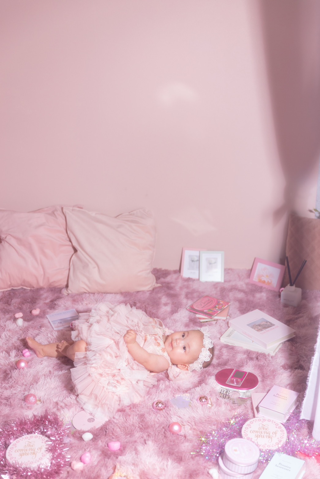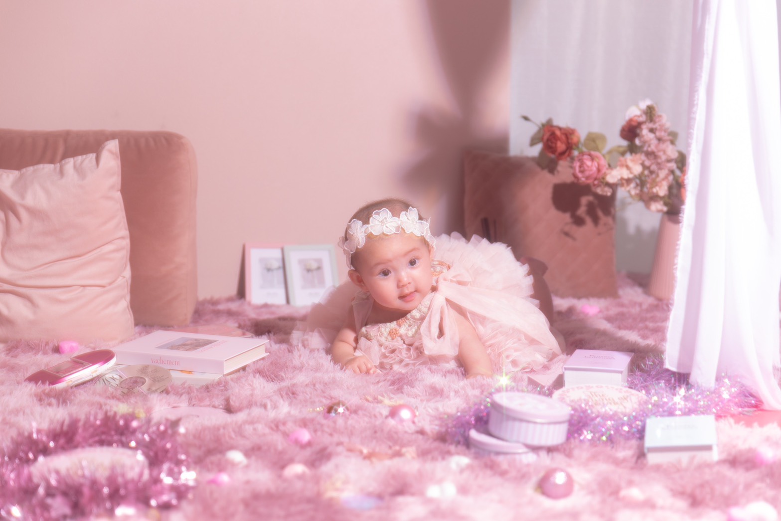 うつ伏せで頑張って顔を上げたり、仰向けで手を伸ばしたり、赤ちゃんならではの仕草も◎✨
