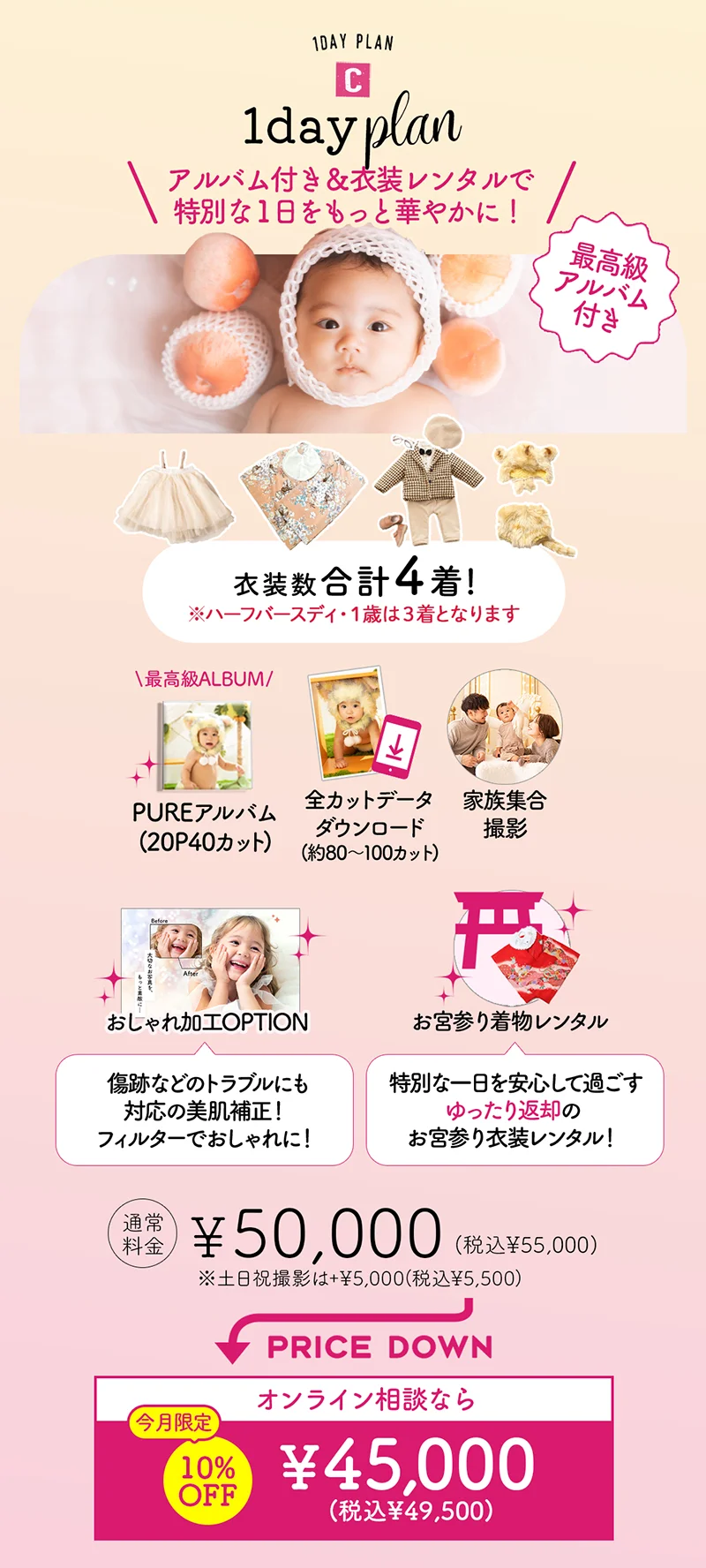 最高級アルバムがお得に手に入るのが、この1dayプランです。