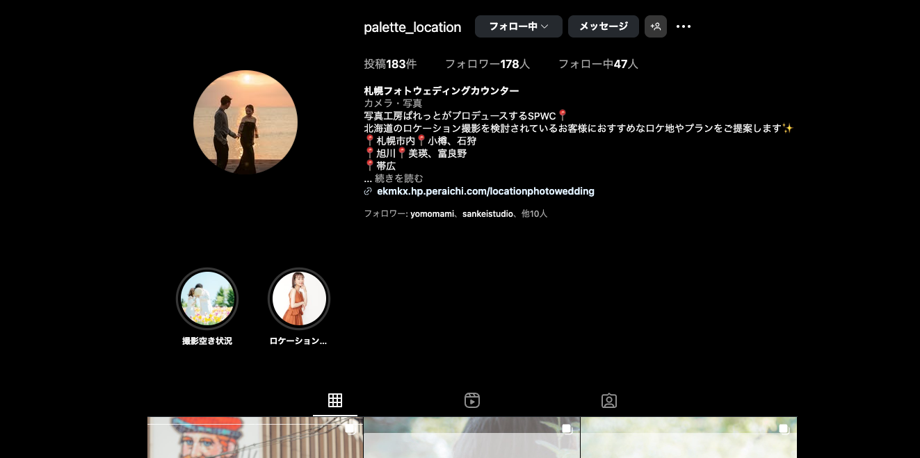 ぱれっとの、ロケーションフォトウェディング専用アカウントができました!!