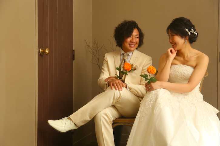 【ウェディングドレス&キャメルタキシード】