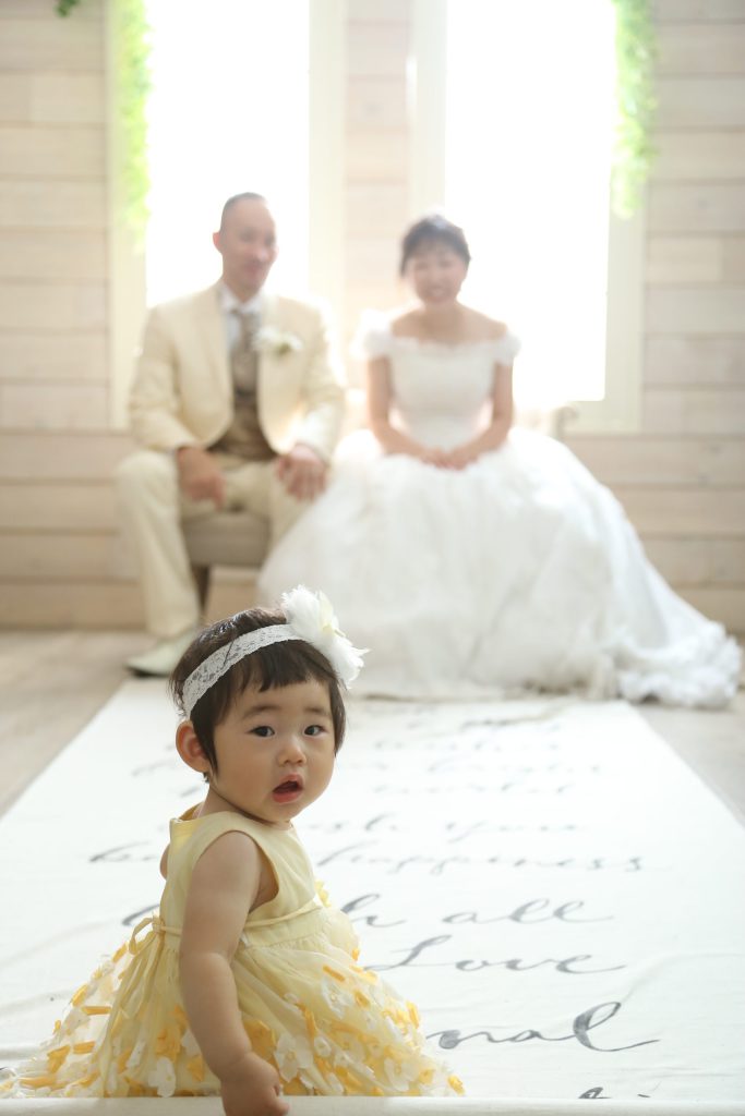 お子様の無邪気な表情がとても癒されました!!その姿を見ているお嫁様お婿様も楽しそうな笑顔が溢れていて素敵な空間でした✨