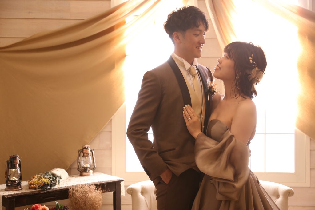 【モカドレス✖️ブラウンタキシード】背景:オータム