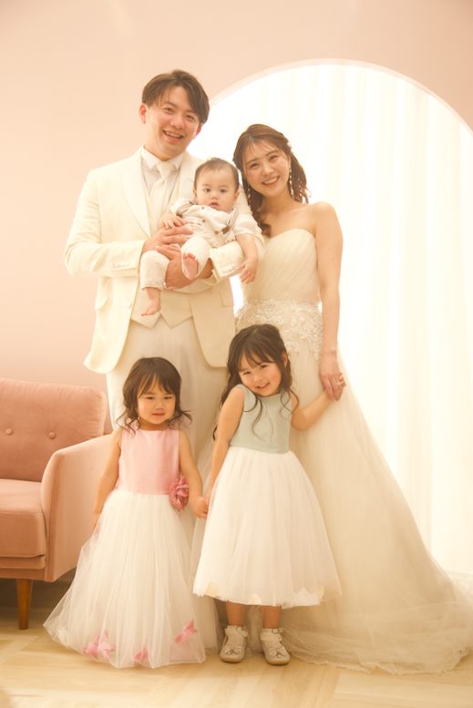 お子様の衣装もご用意しておりますので、お父様お母様と一緒にタキシードやドレスを着て撮影が可能です✨