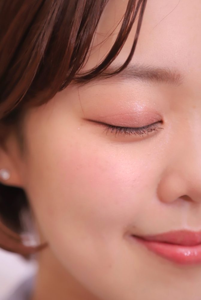 ライトピンクだけでは目がボケてしまいやすいので、ペンシルラインでまつ毛の際を埋めてあげたり、