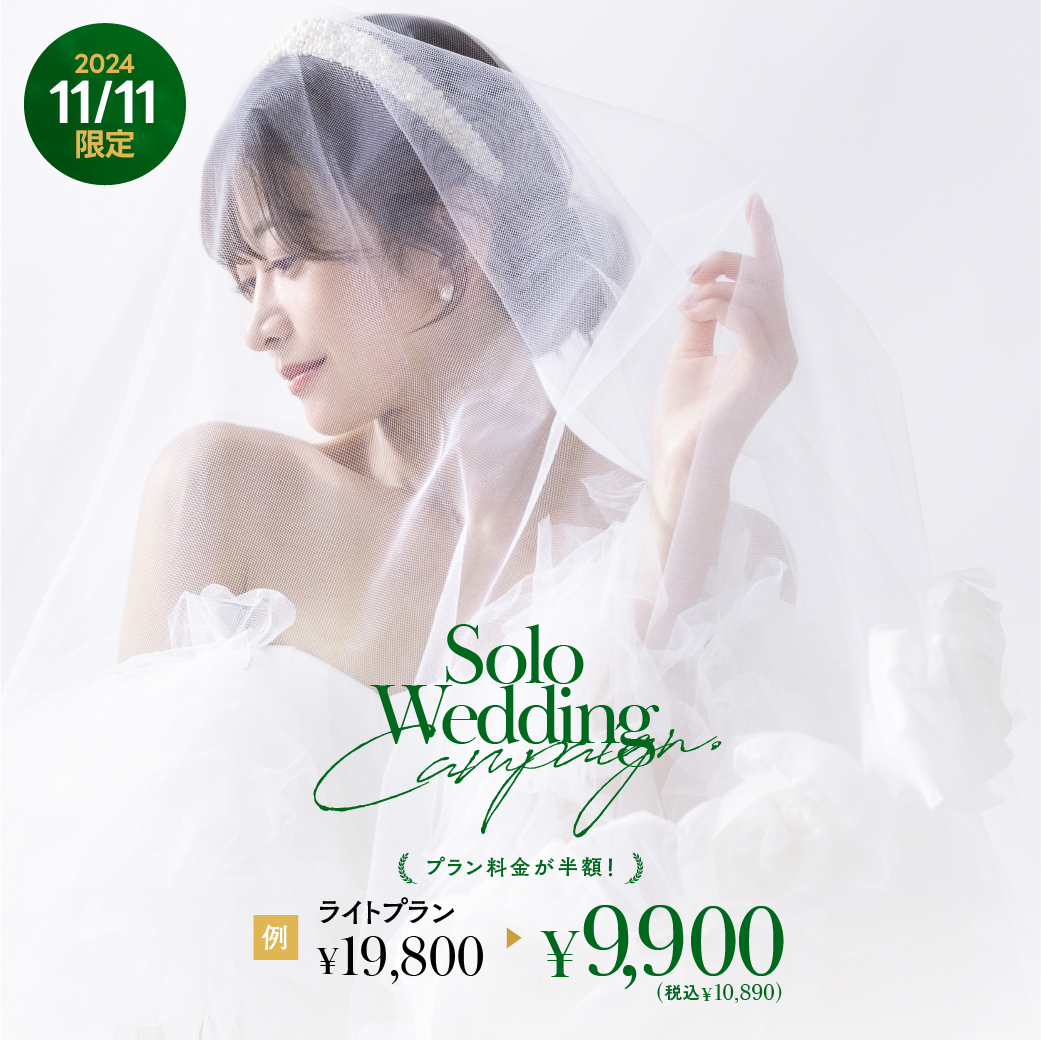本日は2024.11/11限定!ソロウェディングが破格の値段に?!