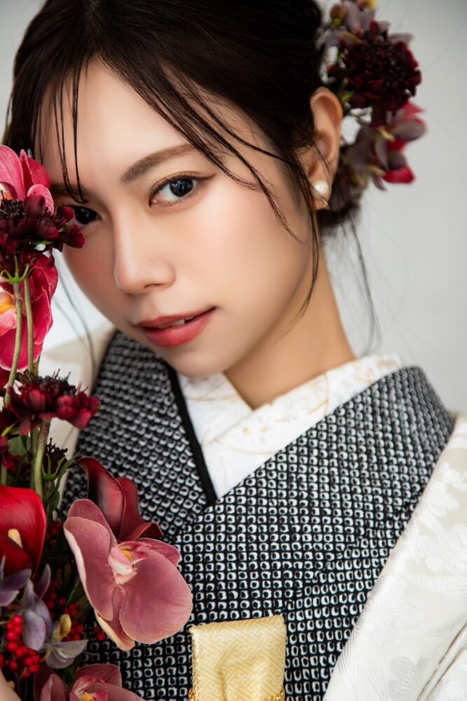 こちらのビジュアルは、和装で女性の強さと可憐さを引き出すビジュアルとなっております。