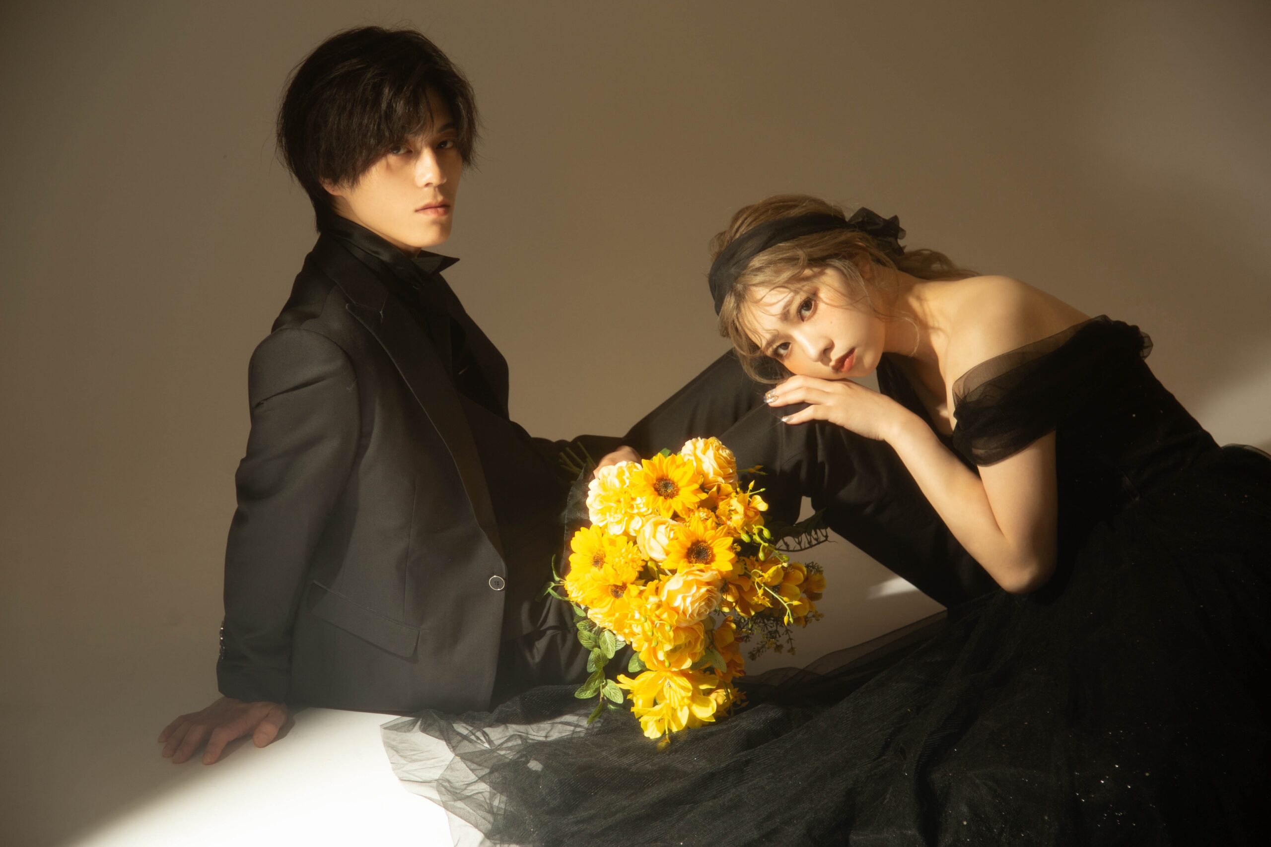 ブラックタキシードは、締め色でシック・クールな雰囲気に。