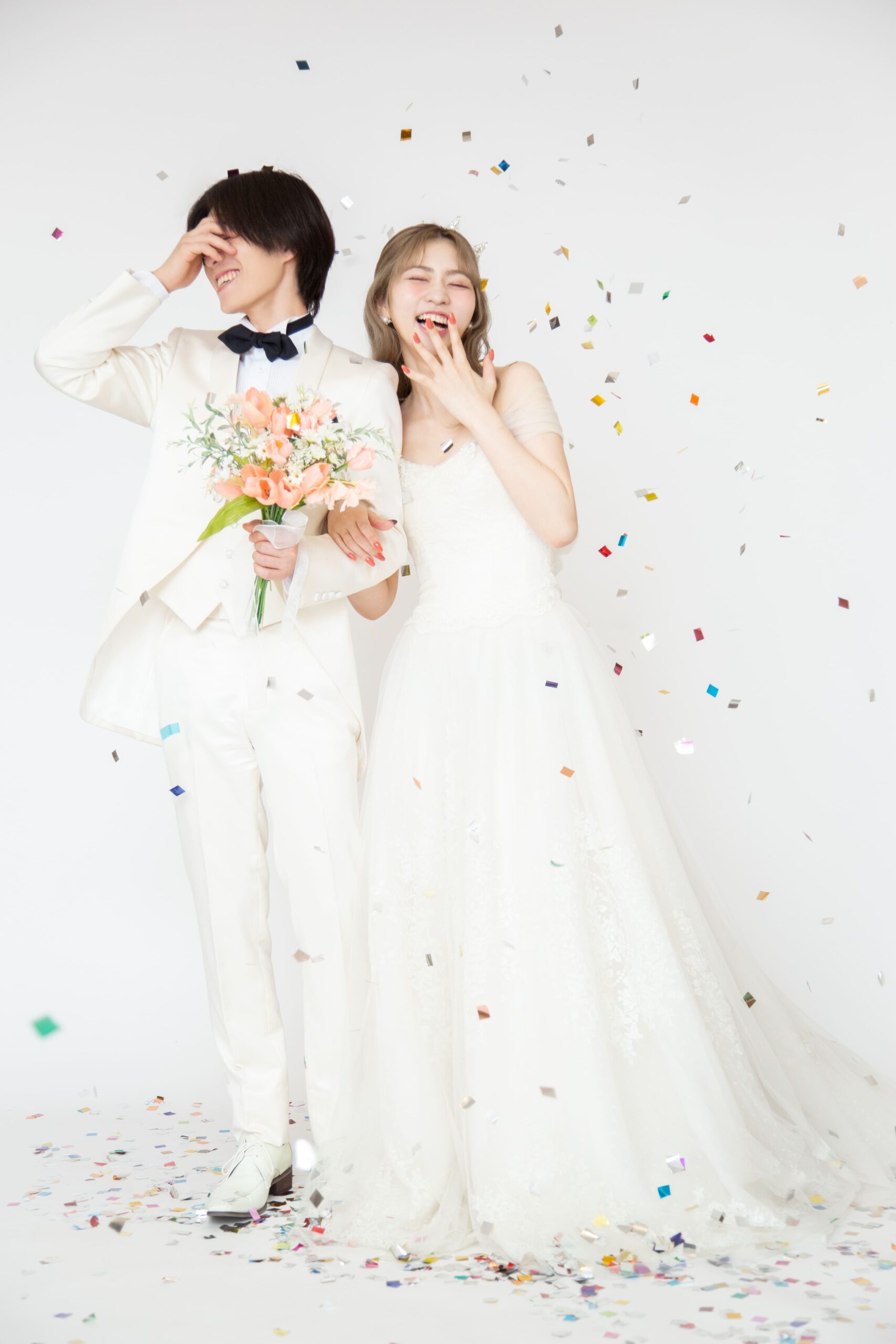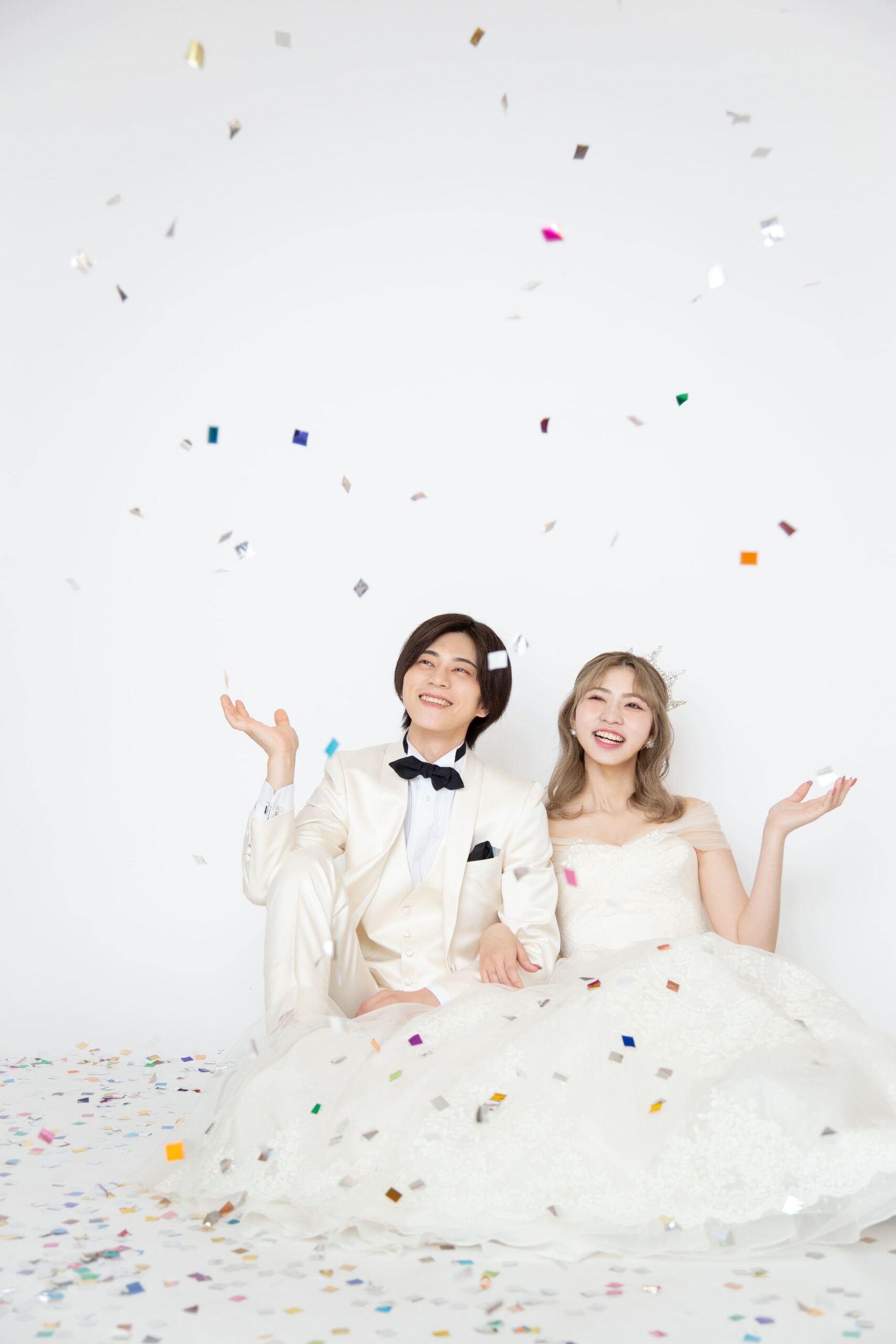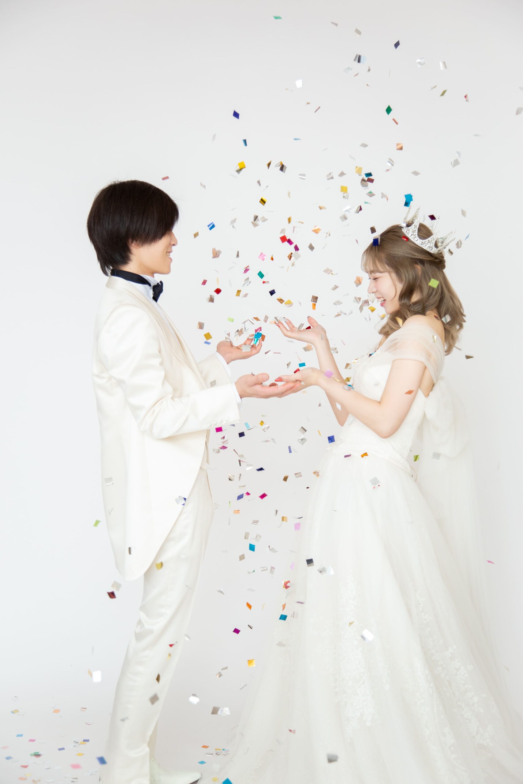 紙吹雪のコンフェッティーを使った華やかでPOPな撮影が可能です♪