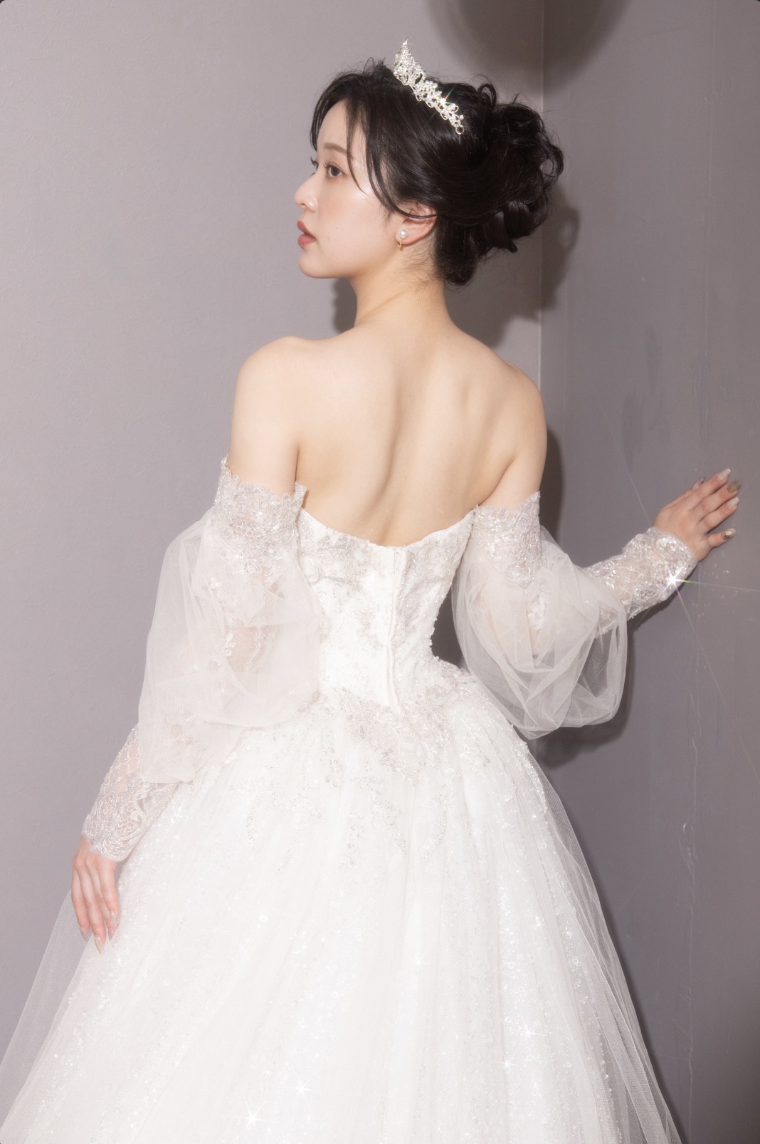 360度どこを切り取ってもキラキラと煌めくドレスは圧倒的主役感を演出。