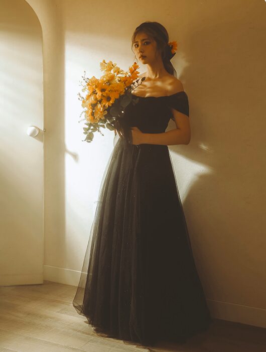 今人気の黒ドレスです!オフショルのデザインでかっこよく着たい方におすすめです。◎
