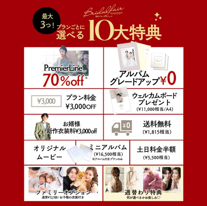 ※ブライダルフェアとの併用は不可となっております。