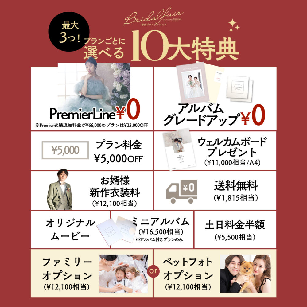 ※ブライダルフェアとの併用は不可となっております。