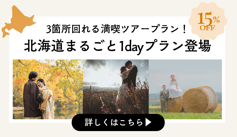 北海道の婚礼ロケーションフォトは北海道ならではの広大な敷地や自然あふれるロケ地が大人気! この度、北海道ロケーションフォトと写真工房ぱれっとの本格的スタジオが一緒に楽しめるが新プランが登場しました!