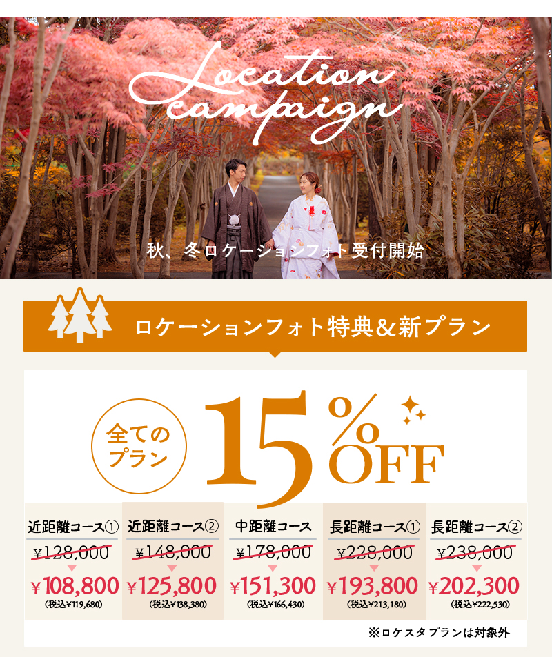 ◎プラン料金10%オフ/ロケーションプラン15%オフ!