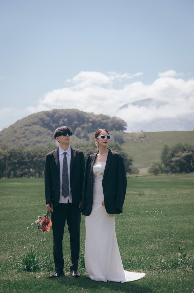 コーディネートのワンポイントとしても存在感をプラスし、広大な風景の中でもお二人がより映える”今っぽ”スタイリングです♪