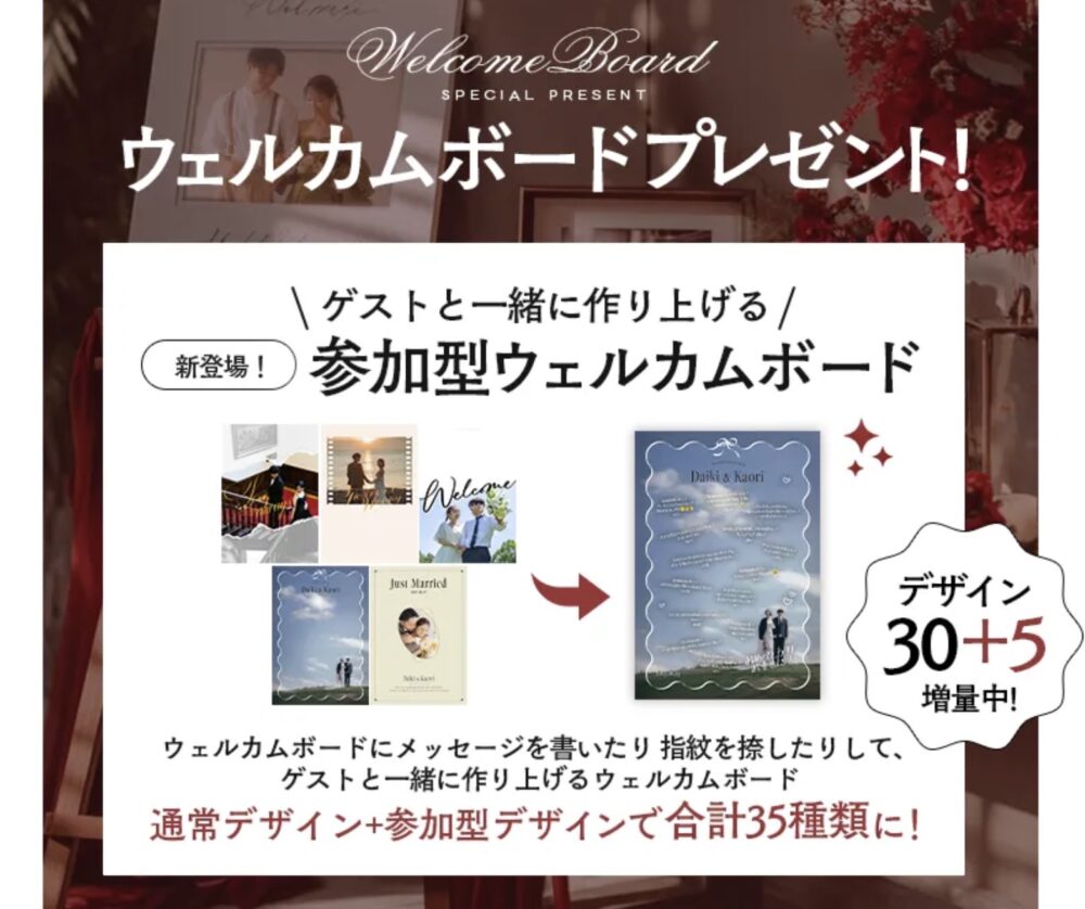 結婚式のウェルカムスペースにはもちろん、ご自宅の玄関やリビングに想い出を取り入れることができるおしゃれな『ウェルカムボード』プレゼントキャンペーンをご案内いたします♪