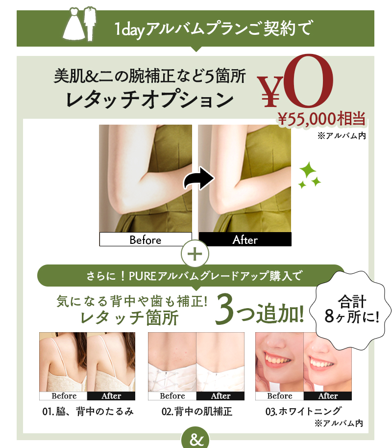 ◎通常、美肌補正 55,000円のレタッチが今なら無料!