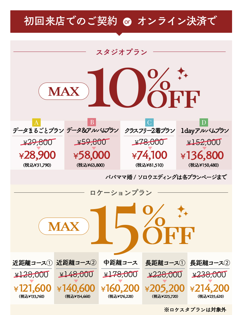 初回ご契約orオンライン決済でスタジオプラン料金最大10%オフ、ロケーションプランは最大15%オフ!