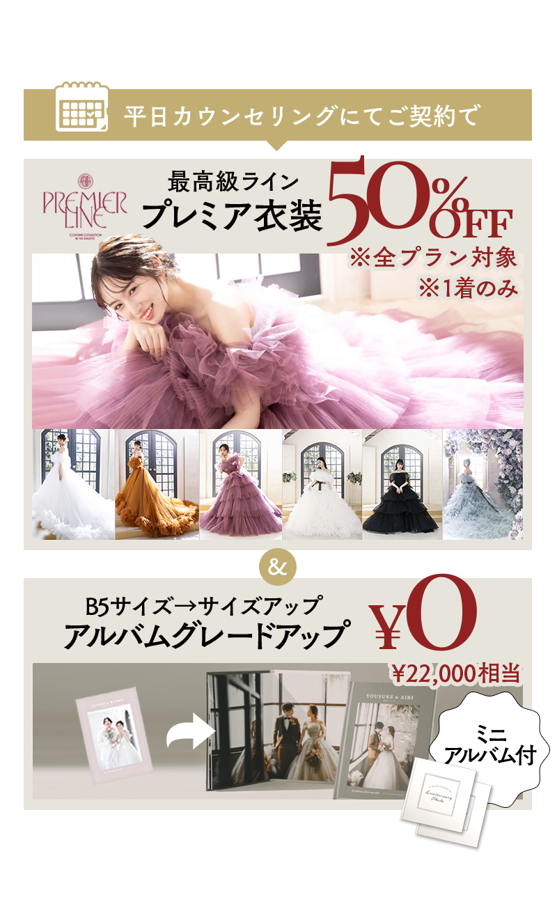 追加¥15,000(税込¥16,500)にて、1dayアルバムプラン内でお選びいただける
