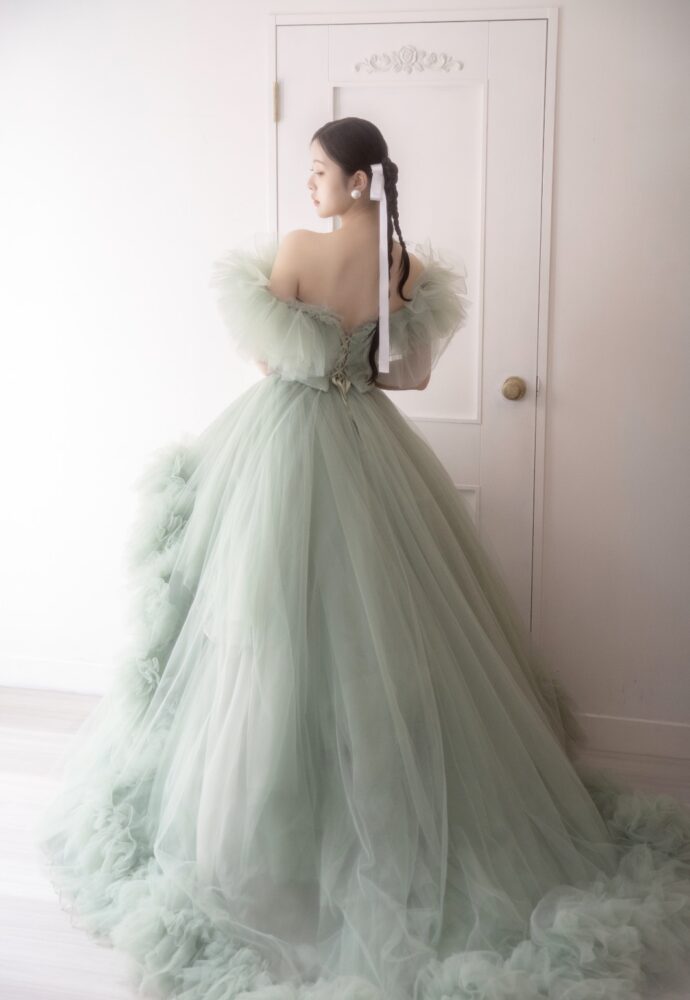 2025/11/12【北海道フォトウエディング】”Premier line dress”大人気ドレスブランド「Lulu felice」の新作ピスタチオドレスが入荷!!