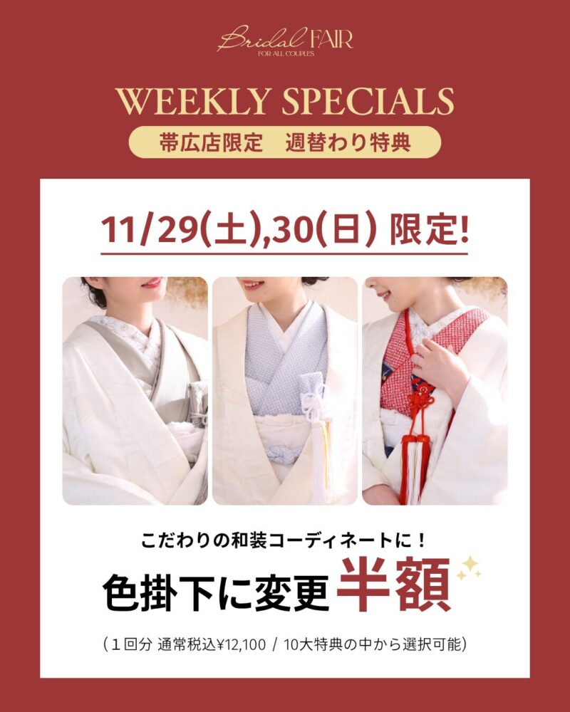 ※札幌ブライダルフェアと11月キャンペーンとの併用はできません。予めご了承くださいませ。