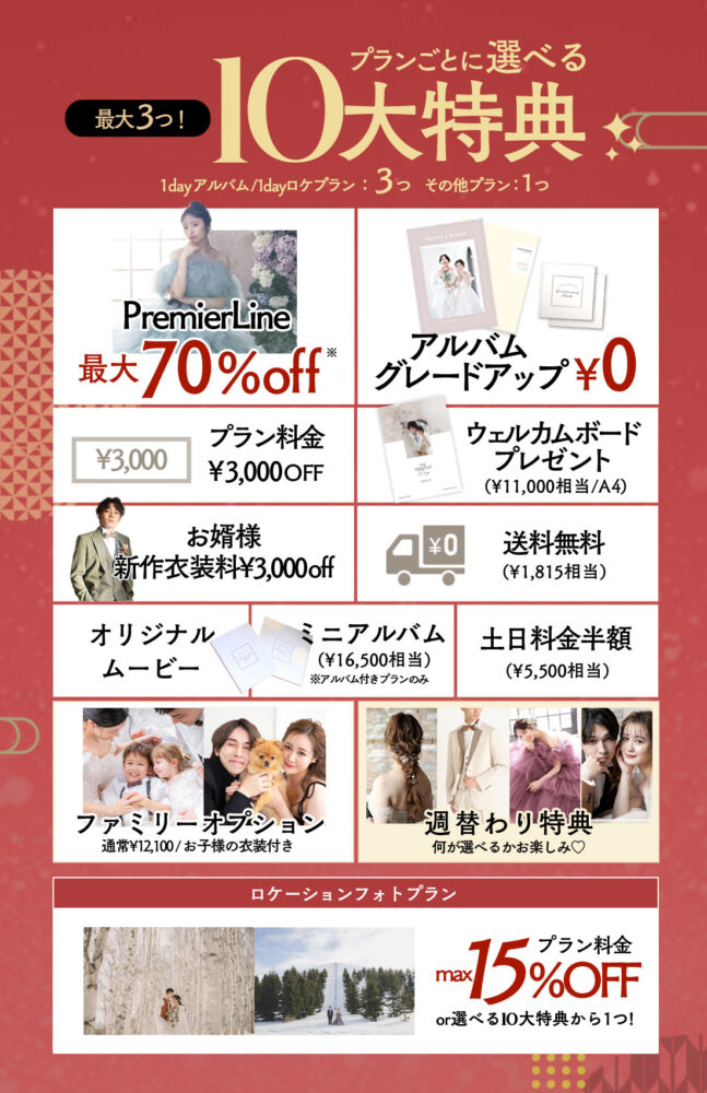 💍【ウェディングフォト限定!】12月はさらにお得!週替わり特典&ヘアチェンジで理想の一枚を