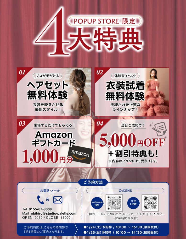 2025/12/07大好評につき!1/24-25イオン釧路店でブライダルPOP-UP開催💖