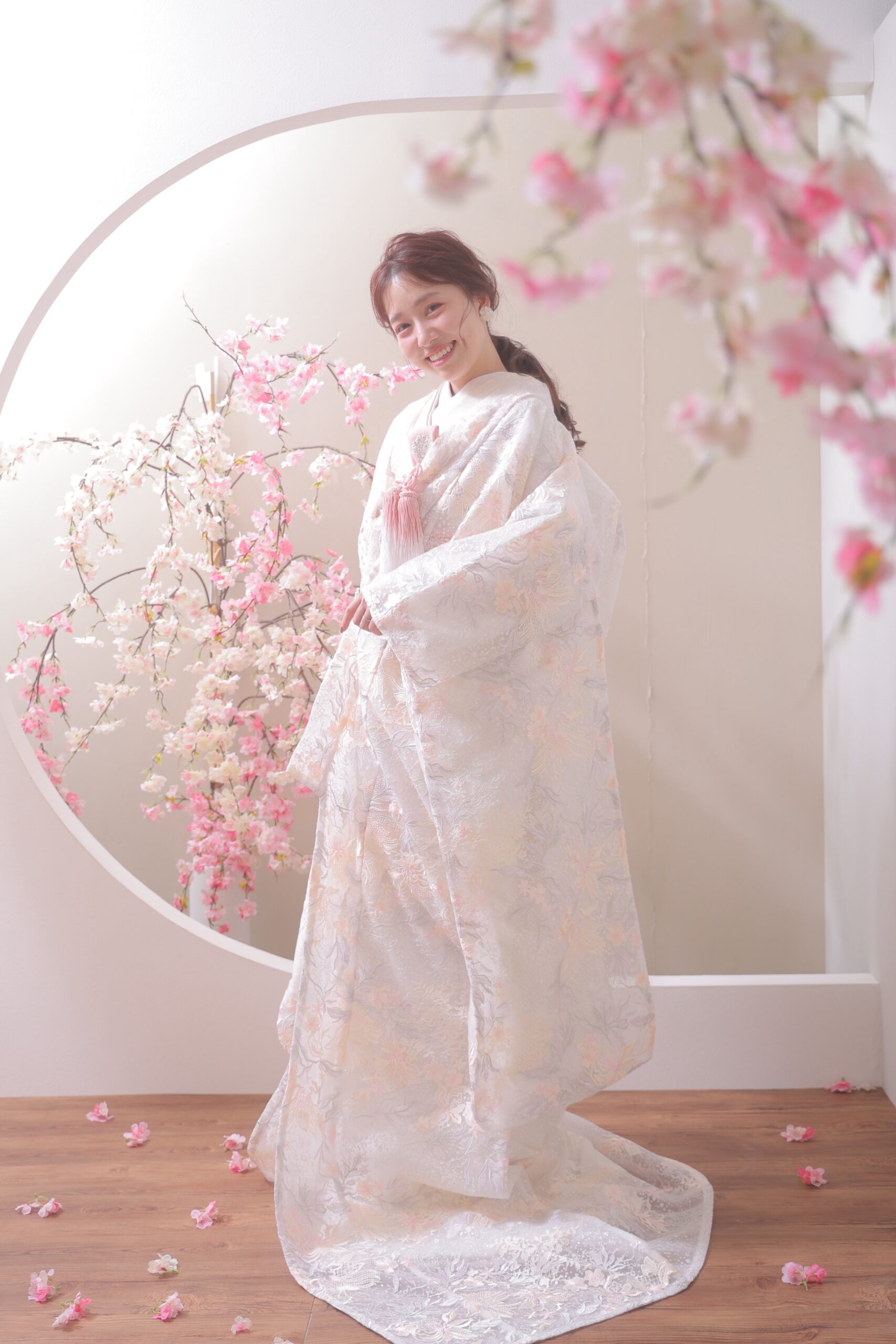 帯広でフォトウェディングをお探しのプレ花嫁様必見!「桜の時期を逃してしまった」「冬だけど春らしい写真を撮りたい」そんな願いを叶える、通年で桜ショットが撮れるスタジオをご紹介します。