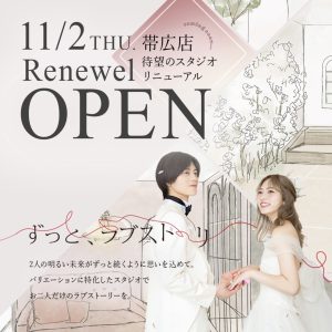 ただいま11/2にリニューアルオープンに向けてスタジオを改装しております!! 新しく生まれ変わったスタジオで新しいドレスを着て撮影しませんか?