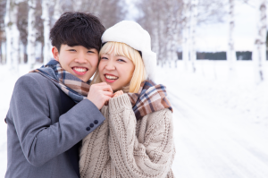 ブライダル冬ロケ<白樺並木>で広告撮影を行いました!雪と一緒に撮影できるのは今だけ!!