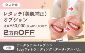 皆さんこんにちは!ぱれっと帯広店です。 今回は1月の目玉特典レタッチオプション2万円オフキャンペーン内容をお伝えいたします! こだわりのお嫁様には大変人気のオプションになっております。