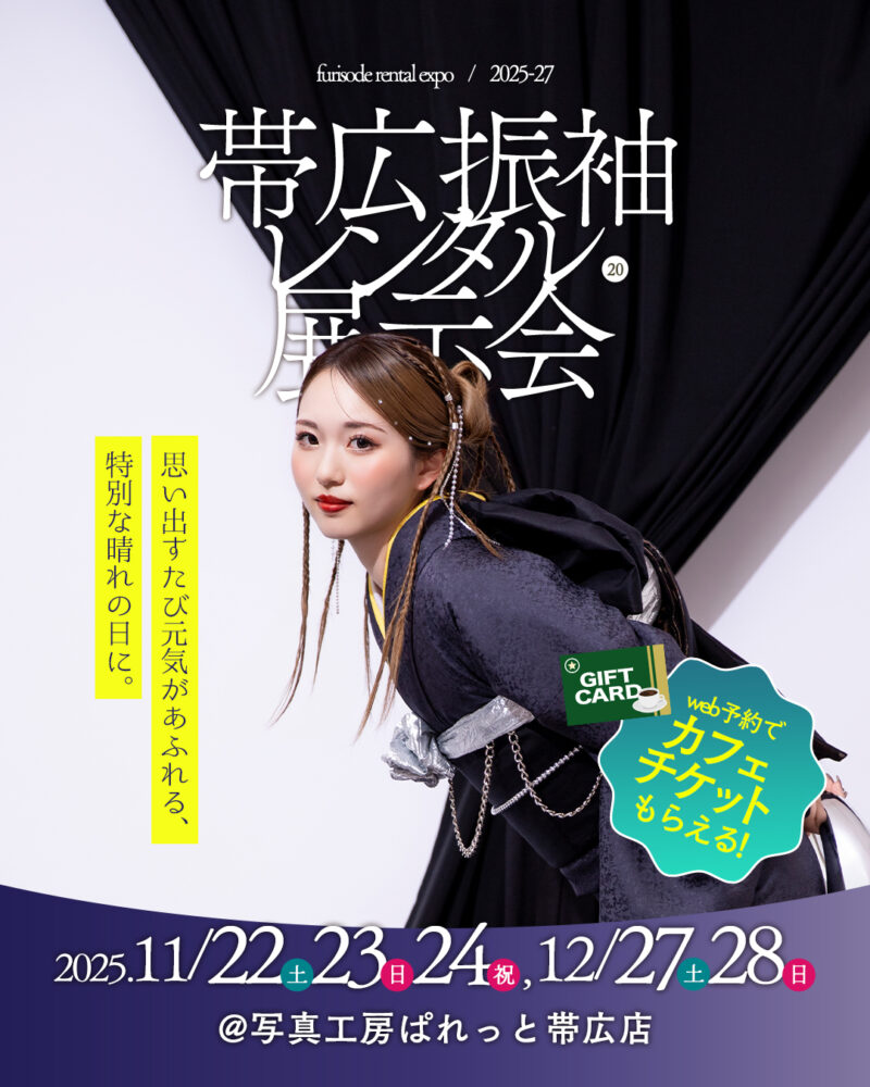 こんにちは! 写真工房ぱれっと帯広店です! 今回は9月26日〜28日に開催される振袖展示会について 深掘りしていこうと思います! 2026年度の成人さんはもちろん、 2027年度・2028年度の成人さんも要チェックです!!
