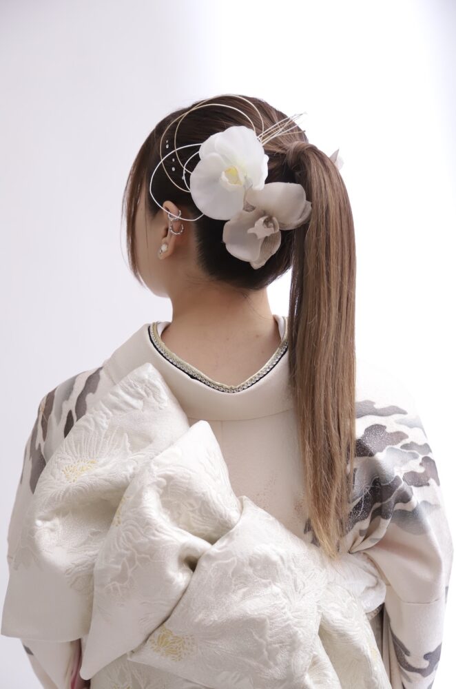 飾りはヘアがシンプルなので飾りを大きくシンプルな色合いにしワンポイントで大きく🌺
